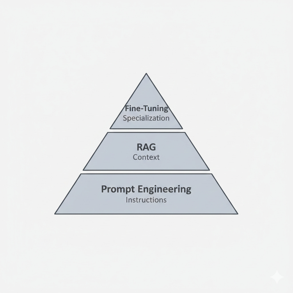 Most teams skip straight to the expensive solution because it feels more sophisticated. But prompt engineering handles more use cases than people expect, RAG solves the knowledge problem without model changes, and fine-tuning should be your last resort, not your first instinct.