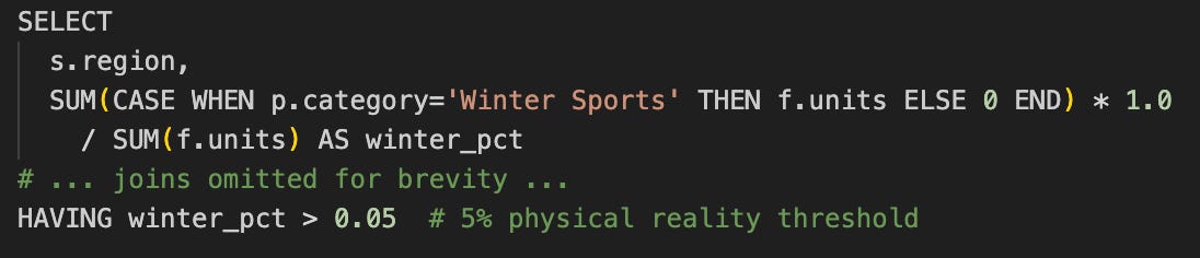 prevents rounding errors)Specifically isolates winter products (snowblowers/coats)