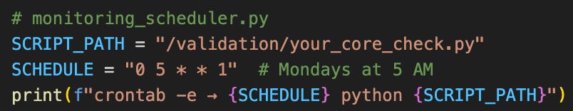 monitoring_scheduler.py → Automated watch commander: Sets up weekly safety checks that run during off-peak hours.