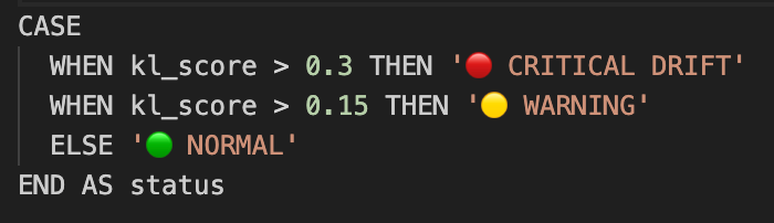 We visualized findings using Tableau with nightly CSV exports of KL scores. CASE statements created actionable alerts:
